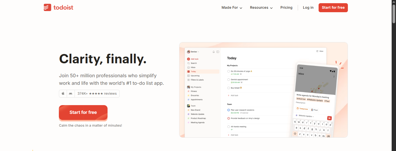 Todoist is a to-do list program that provides project collaboration, organization, and planning functionality for teams and individuals. This tool aims to help users organize their thoughts for more mental clarity and better work performance.